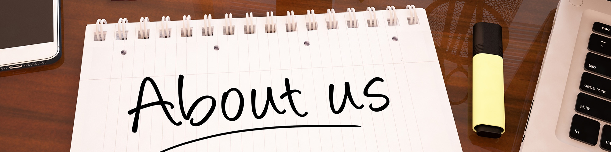 A notebook with the words About Us
